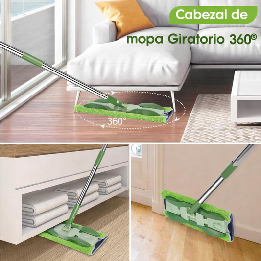Trapeador 360° Microfibra Plano con 4 Paños Lavables Hogar