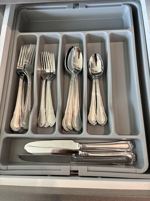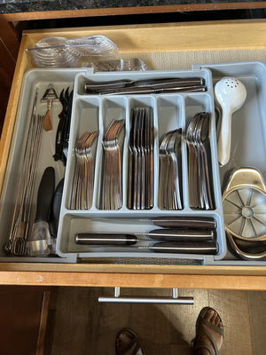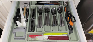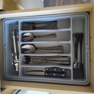 Con sus compartimentos profundos y expansibles, siempre encontrarás rápidamente lo que necesitas. Ya sea para una cena rápida o una gran fiesta, tendrás tus utensilios organizados y listos para usar.
