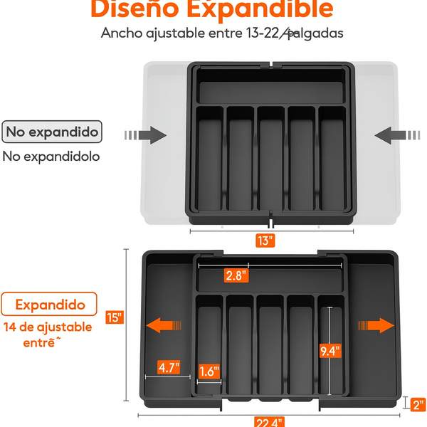Sí, su diseño expandible permite ajustarse a la mayoría de los cajones estándar. Solo mide antes de comprar.